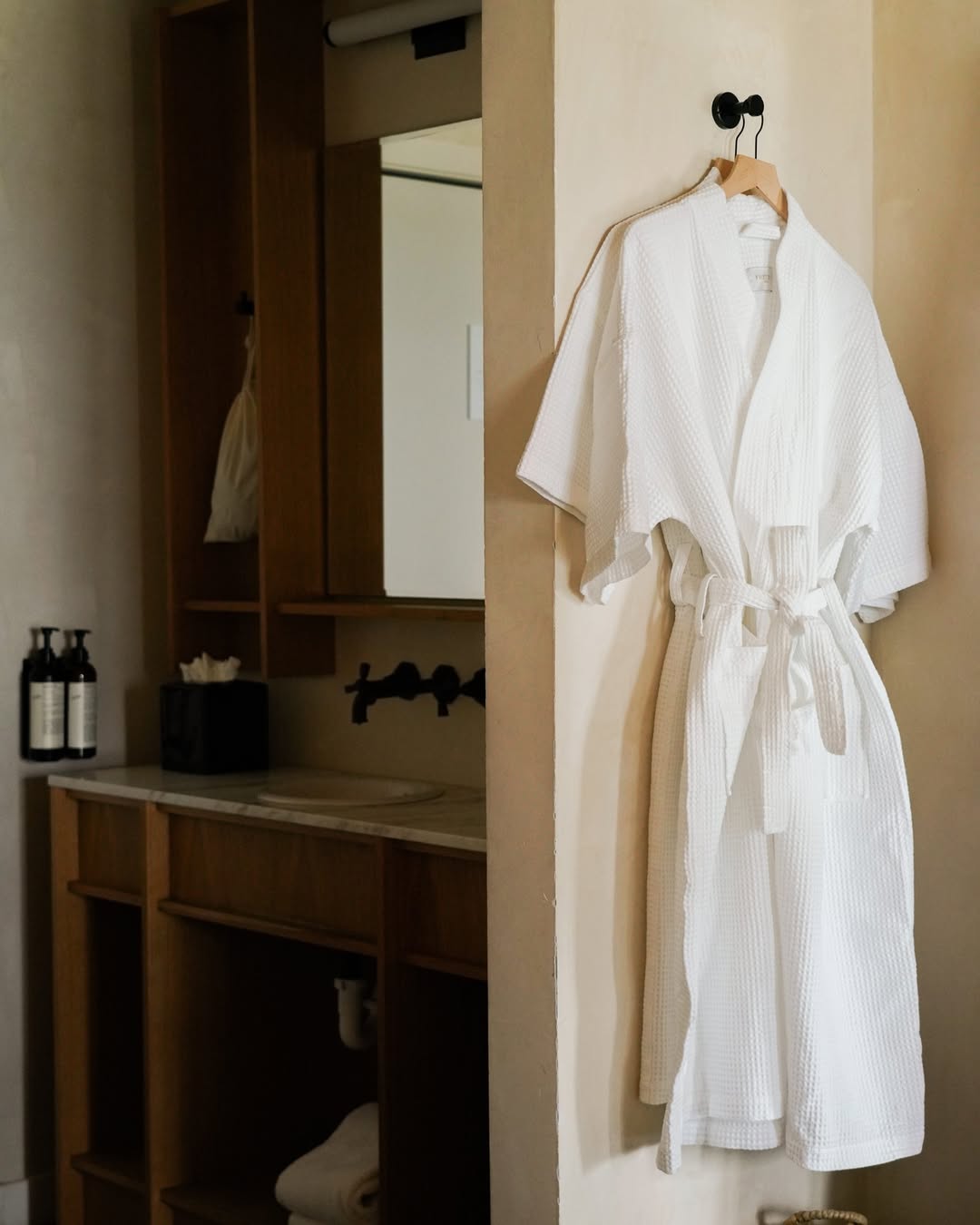 Marram's design is coastal and understated. Each room features neutral tones, wood accents, and curated details like cork flooring and handwoven rugs. There are no TVs. Instead, windows open to sea breezes. Bathrooms are stocked with clean, modern amenities and plush essentials, keeping the feel elevated yet grounded.