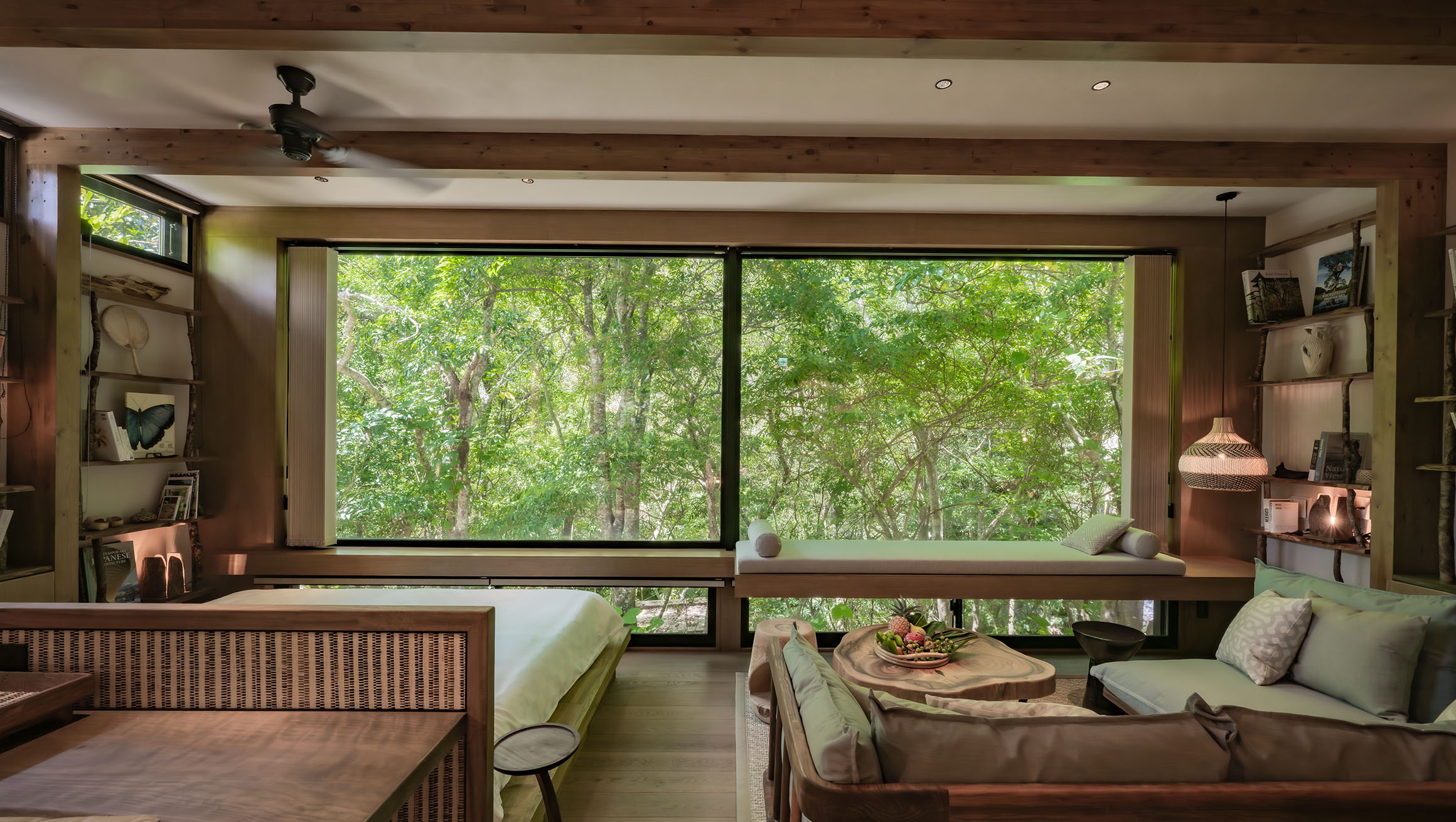 Each treehouse is unique in layout but follows the same principles—elevated wooden structures, large windows, solar power, and composting toilets. Interiors are simple but warm, with natural materials and minimal decoration. Beds are fitted with crisp linens, floors are polished wood, and views stretch out into a green canopy and blue sky. There's no television, no noise, and no concrete.